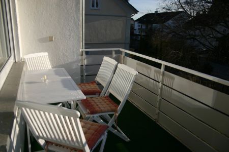 Balkon mit Gartenmöblen und Sonnenschirm |