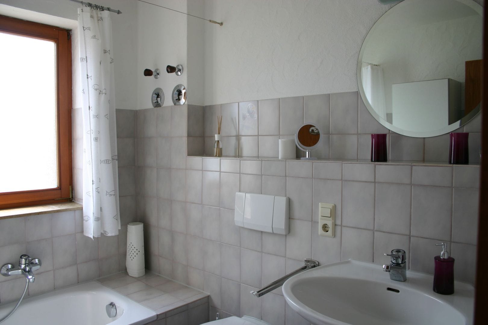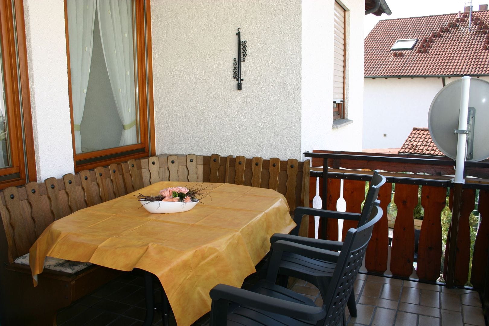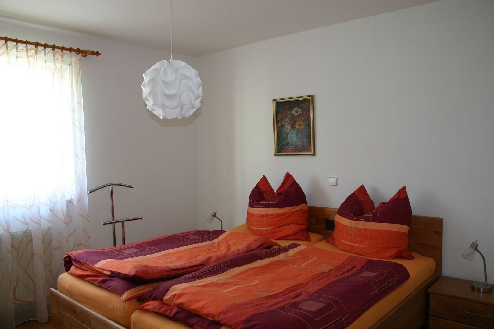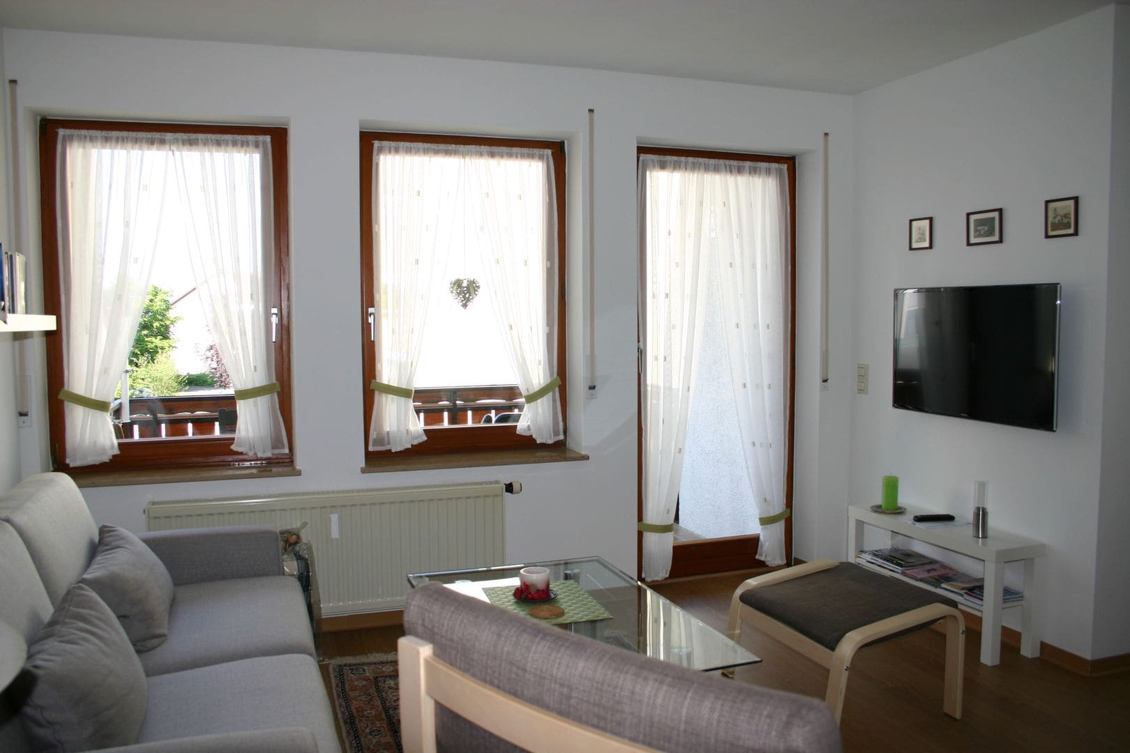 Neu eingerichtete Ferienwohnung, Schlafzimmer mit Doppelbett, Wohnschlafzimmer mit hochwertiger Doppelschlafcouch mit Kaltschaummatratze, großer Sat- TV, Radio, Balkon mit Gartenmöbeln und Markise. Die Küche ist komplett mit Spülmaschine, Mikrowelle, Wasserkocher, Toaster ausgestattet, der Parklpatz befindet sich direkt am Haus. Fahrradstellplatz