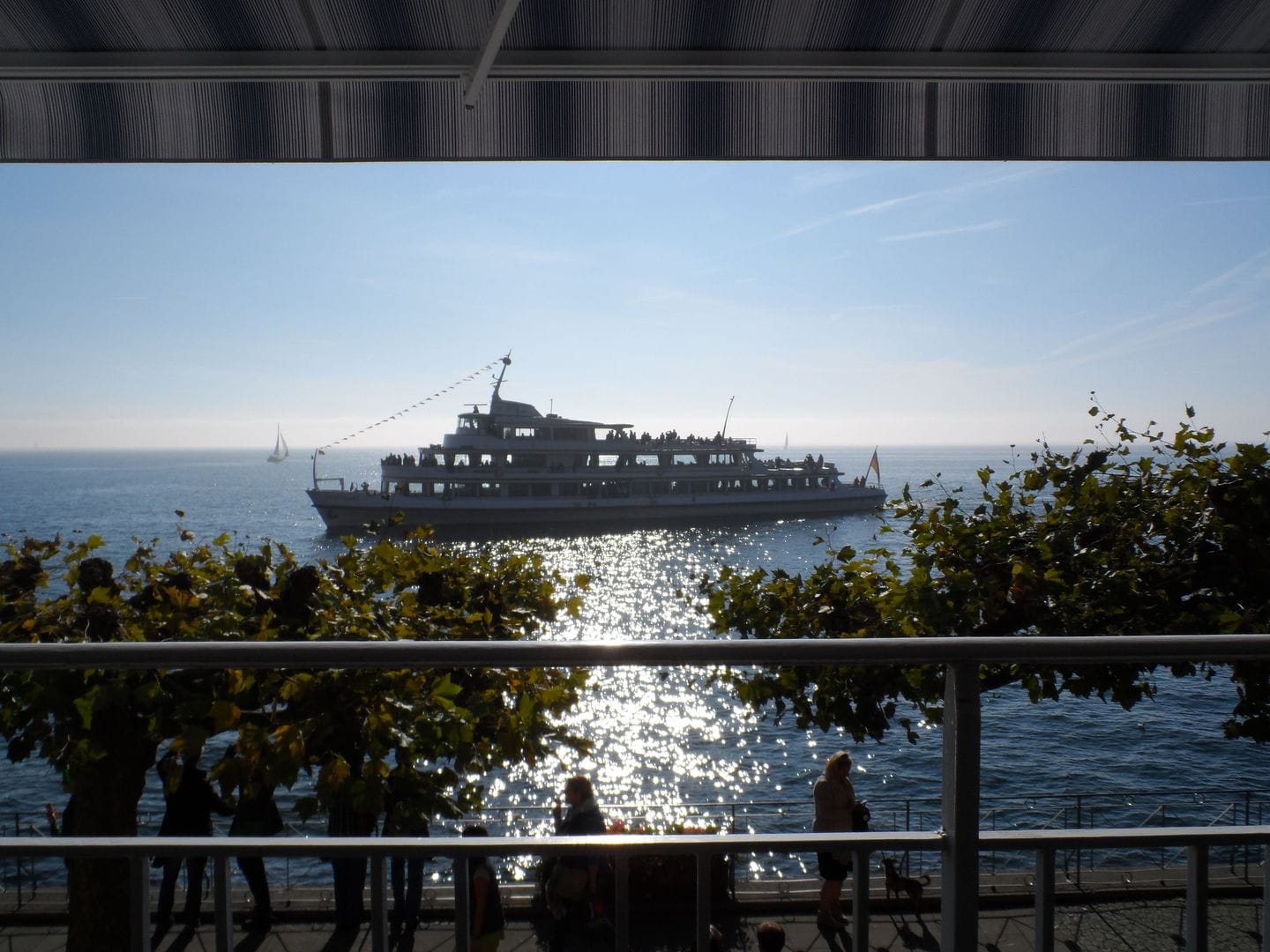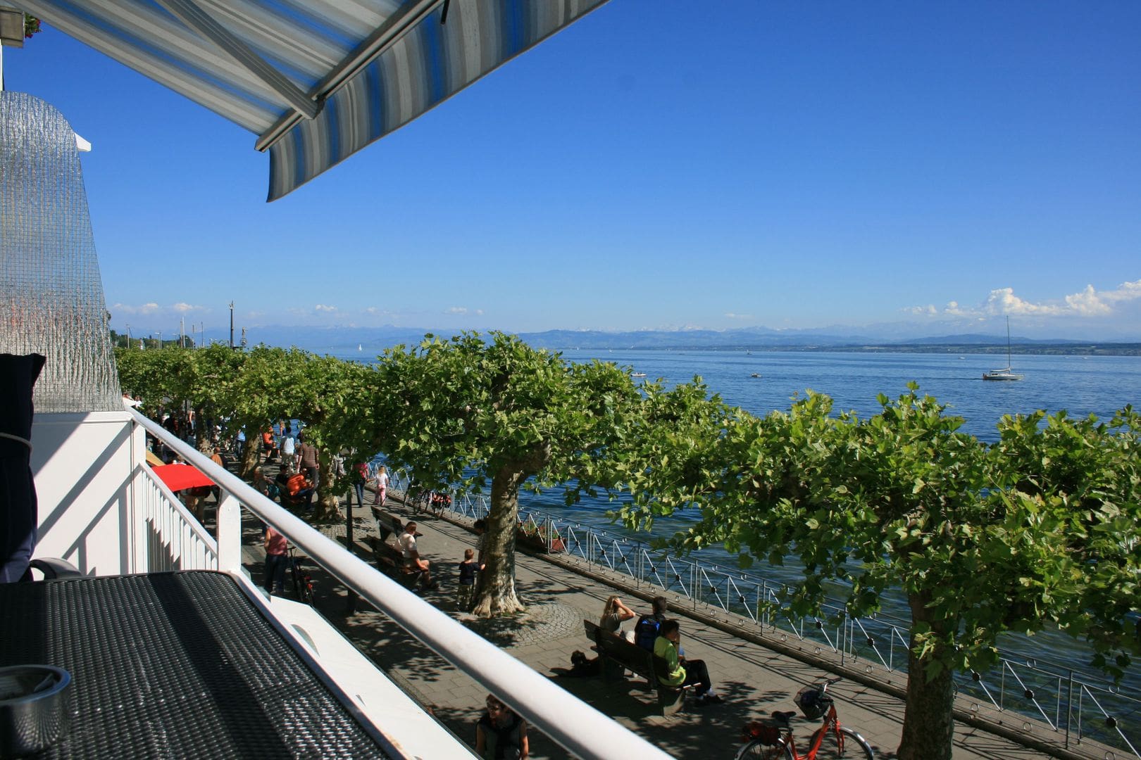 Balkon mit freiem Seeblick und Blakonmöbeln