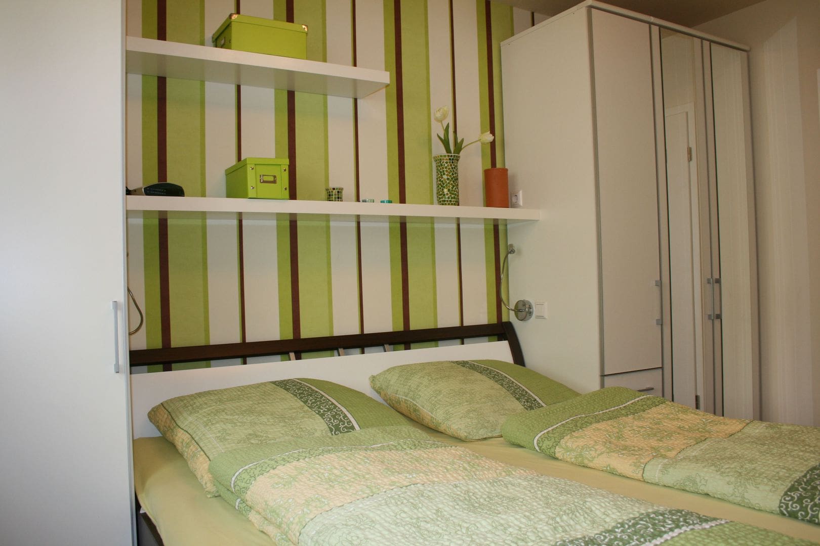 Neu ausgebaute, moderne Ferienwohnung an der sonnigen Promenade in Meersburg, direkt am See und in der Altstadt, zwei Schlafzimmer, ein Schlafzimmer mit Doppelbett und ein Schlafzimmer mit Einzelbetten, die zusammenstellbar sind. Jedes einzelne Schlafzimmer verfügt über ein eigenes Bad mit Dusche und WC.