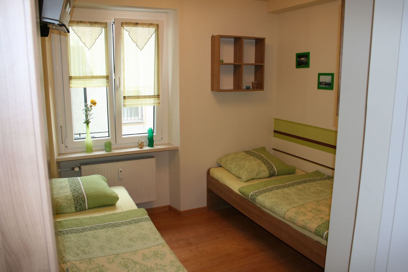 Zahl der Betten Ein Doppelbett (200*200), 2 Einzelbetten kann man auch zusammen stellen , Schlafcouch