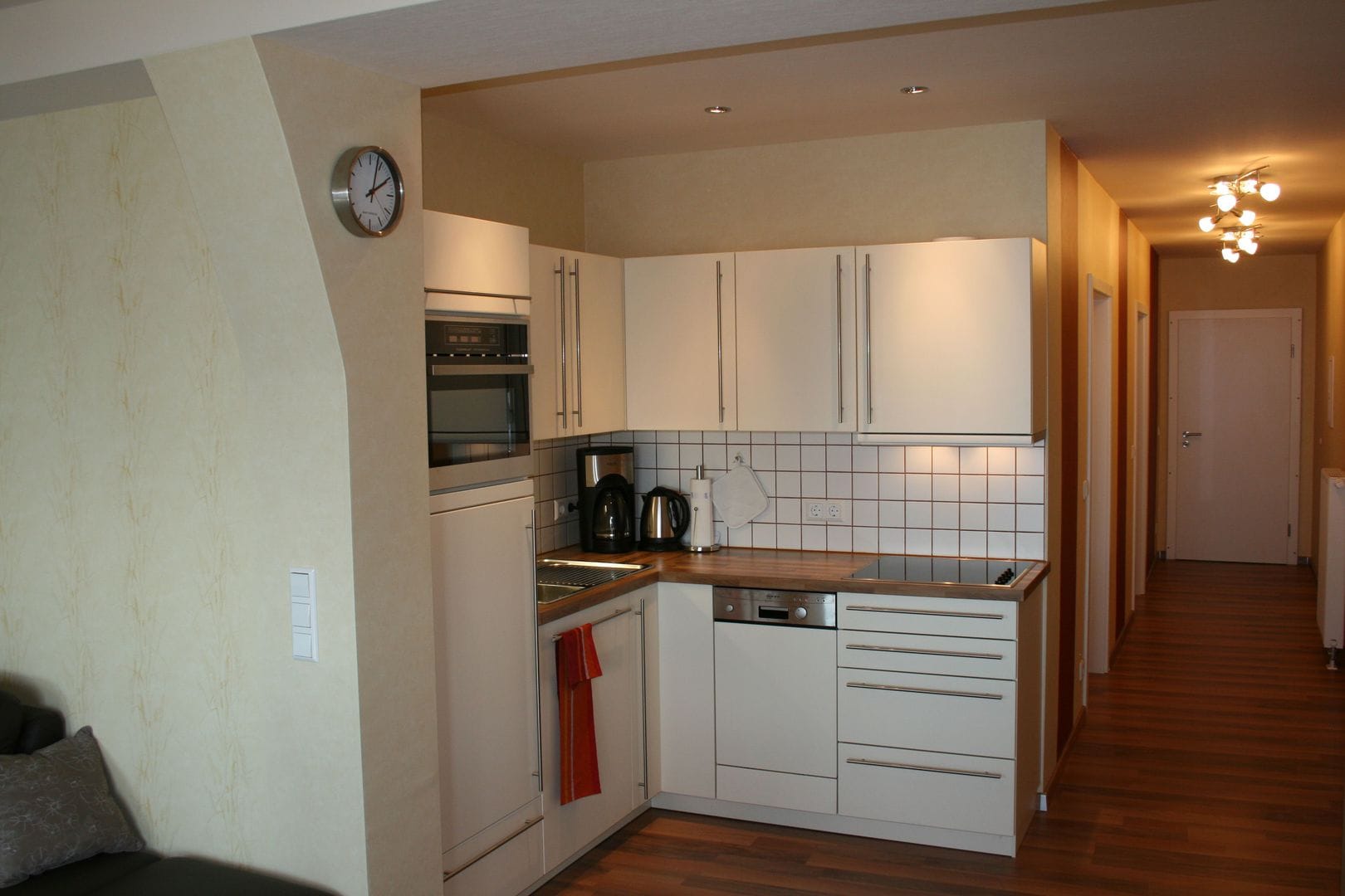 Küchenausstattung ja, , Spülmaschine, Filter- Kaffeemaschine und Padmaschine , Toaster, Mikrowelle mit Backfunktion , Wasserkocher,Kühlschrank mit Gefrierteil, Cerankochfeld