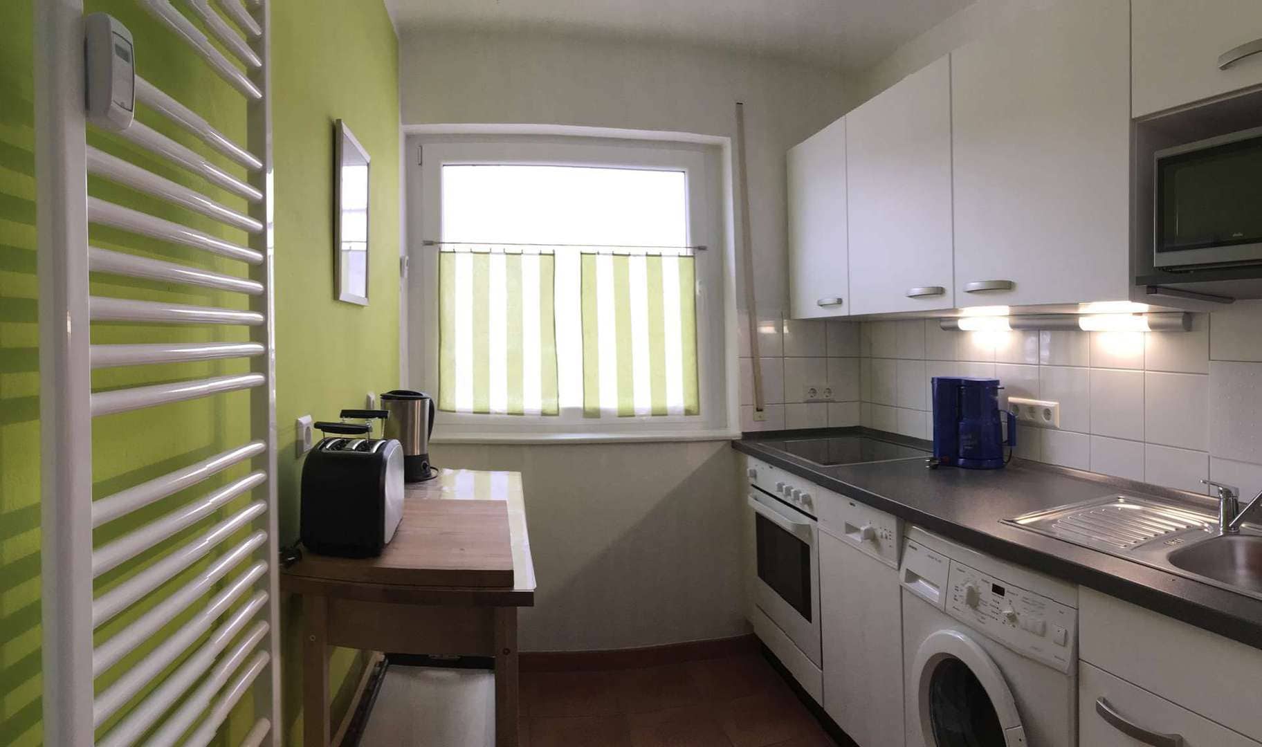 Küchenausstattung ja, Elektro - Backherd, Spülmaschine, Filter- Kaffeemaschine , Toaster , Wasserkocher,Kühlschrank mit Gefrierteil, Mikrowelle, Waschmaschine
